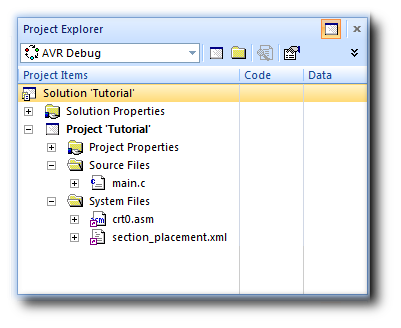 The project name is shown in bold to indicate it is the active project (and, in our case, the only project). If you have more than one project, you can set the active project by using the drop-down box on the Build tool bar or by right-clicking the desired project's name in the Project Explorer to display the shortcut menu with the Set as Active Project command.
