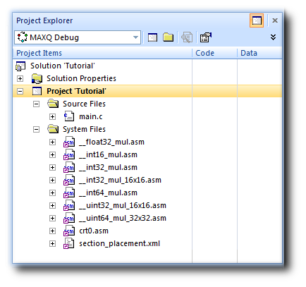 The project name is shown in bold to indicate it is the active project (and, in our case, the only project). If you have more than one project, you can set the active project by using the drop-down box on the Build tool bar or by right-clicking the desired project's name in the Project Explorer to display the shortcut menu with the Set as Active Project command.