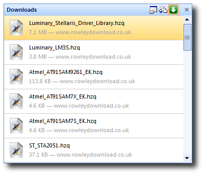 The Downloads Window displays a historical list of files downloaded over the Internet by CrossStudio.