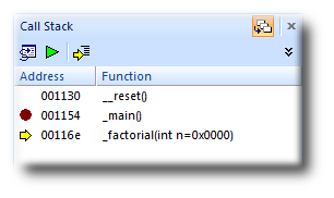 The Call Stack window shows the function calls that have been made but have not yet finished executing, that is the list of active functions.