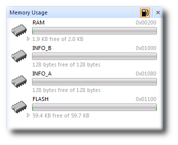 The Memory Usage window can be used to view a graphical summary of how memory was used in each memory segment of a linked application.