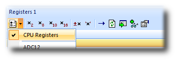 The Registers window can be used to view CPU and peripheral registers. First we shall look at just the CPU registers. To do this, use the Registers 1 window's Register Groups menu to select CPU Registers.